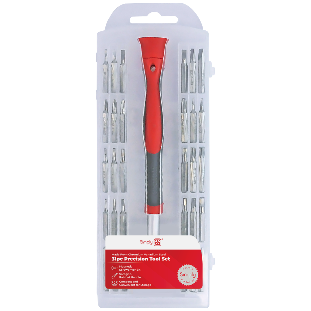 Our 31pc Precision Tool Set is the ideal tool set when comfortably loosening and tightening extremely small screw slots especially with the aid of the soft-grip ratchet handle. Whether you’re working on for example, electronics or appliance related tasks, our great value 31pc Precision Tool Set will offer you the dependable accuracy you’re after every time.