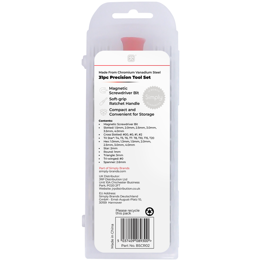 | 31 PIECE PRECISION SCREWDRIVER TOOL SET | BSCR02 | 5037409089300 | H 19.5 x W 7 x D 2 | 0.17 |