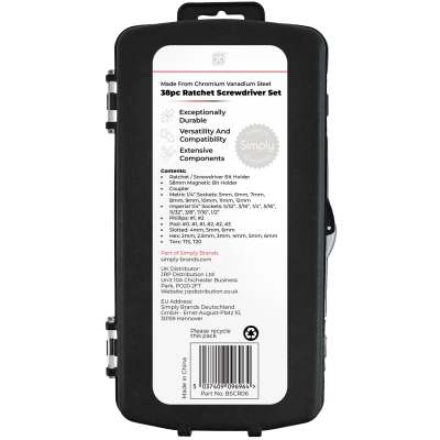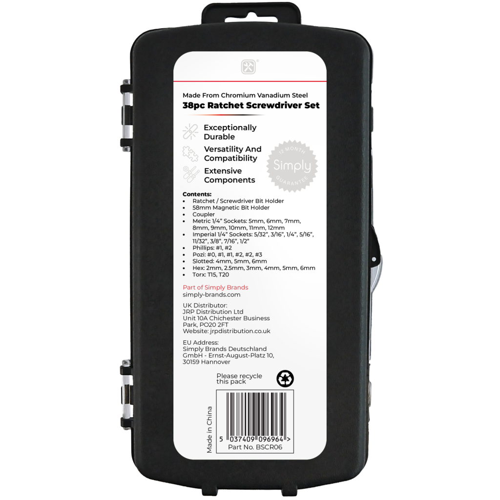 38 PIECE RATCHET SCREWDRIVER SET | BSCR06 | 5037409096964 | H 26 x W 13 x D 4.5 | 0.62 |