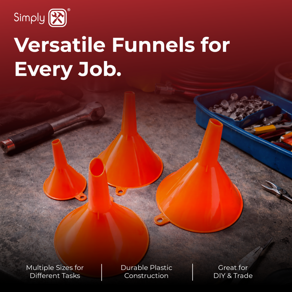 Our lightweight 4 in 1 Funnel set is suitable for a range of pouring applications such as transferring oil, fuel, coolant & other liquids.