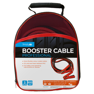We’d recommend choosing a suitable set of quality jump leads/booster cables from within our extensive Simply Auto range to keep somewhere safe in your vehicle in case of emergencies. Get maximum power transfer for your vehicle with our professional booster cables allowing you to jump start by connecting two vehicle batteries together in order to transfer current from a functional battery to one that is flat and lacking the power to get the starter motor going. Our booster cables are designed to give you the jump start you need without causing damage to your vehicle’s computer and electronic system. With universally attachable clamps, our indispensable booster cables are suitable for a variety of vehicles whether it’s for a car, van, SUV or 4×4. Stay organised by keeping these professional booster cables in order in the heavy duty zip storage bag with padded carry handle that comes complete with clear operating instructions on the rear of the bag.
