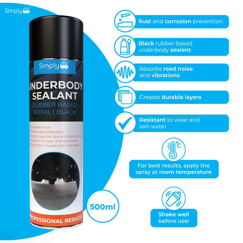 Our Black Rubber Based Underbody Sealant shields the chassis from damage by forming a tough, protective layer that blocks stones, gravel, and road debris from directly striking the metal.