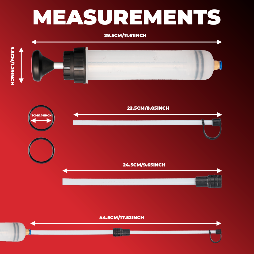 The Simply Extraction & Fill Pump is suitable for a range of automotive and household applications. It’s ideal for transferring fluids such as brake oil, power steering fluid, coolant, or even small quantities of water and cleaning agents. Two interchangeable 9-inch hoses make it adaptable for multiple tasks, providing both reach and flexibility.