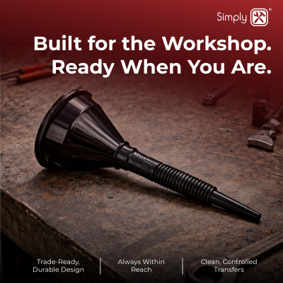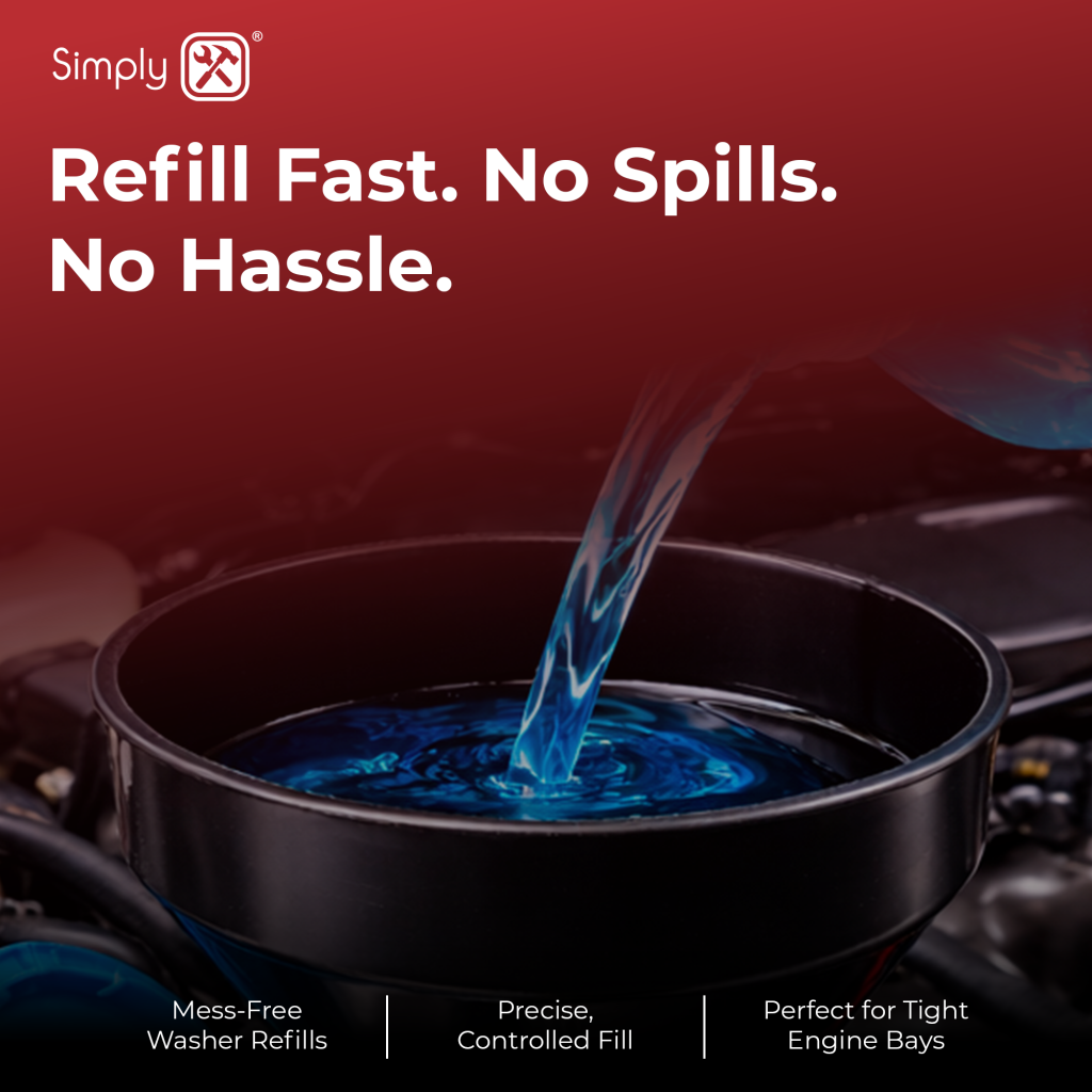 Our Flexible Funnel conveniently has a handy hanging hole and integral carry handle for secure refilling.