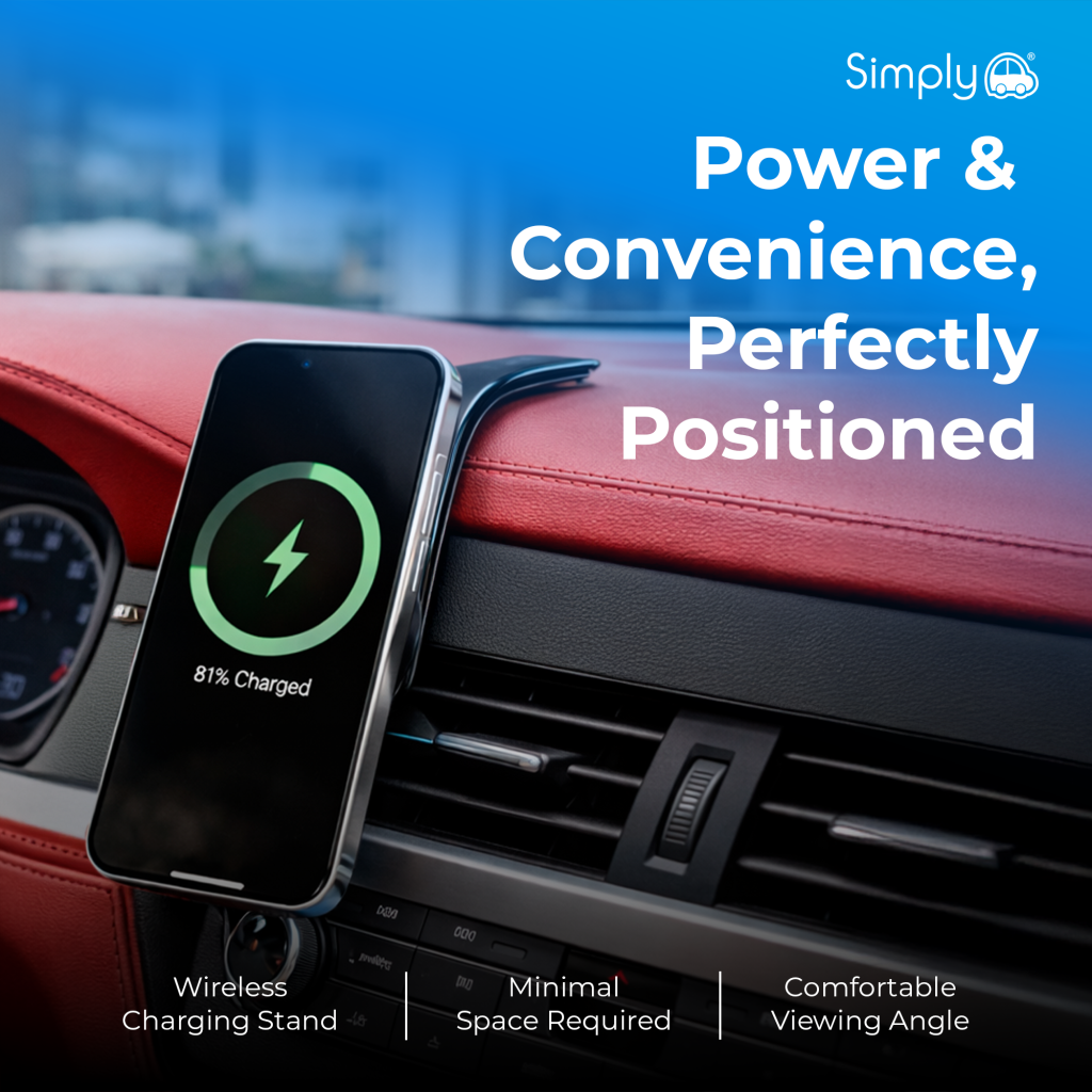 The Simply Auto Magnetic Wireless Charging Vent Mount is designed to keep your smartphone securely positioned while providing convenient wireless charging on the move. The compact vent-mounted design keeps your phone within easy reach without cluttering the dashboard, making it ideal for hands-free driving.