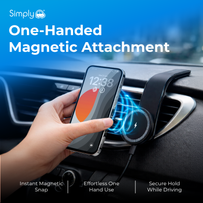 Perfect for navigation, hands-free calls and keeping your phone charged on the go, the Simply Auto Magnetic Wireless Charging Vent Mount is a practical solution for daily commutes and longer journeys.
