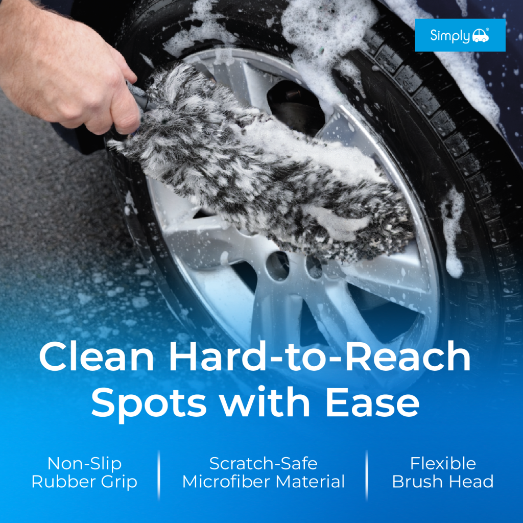 Cleans Where Other Brushes Can’t. The soft brush head bends and flexes easily, allowing you to reach deep into wheel spokes, behind alloys, and around tight curves for a more thorough clean.
