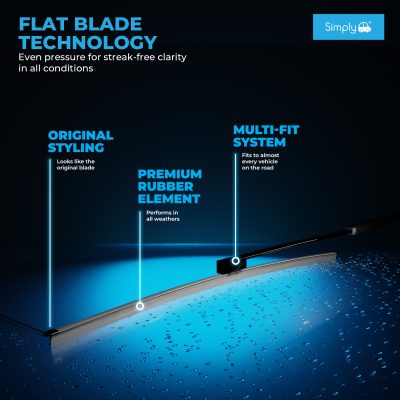 Our wiper blades incorporate flat blade technology, ensuring perfect wiping pressure across the whole blade length for optimal visibility in all weather conditions.