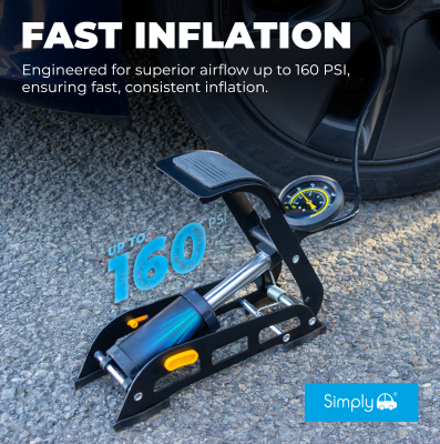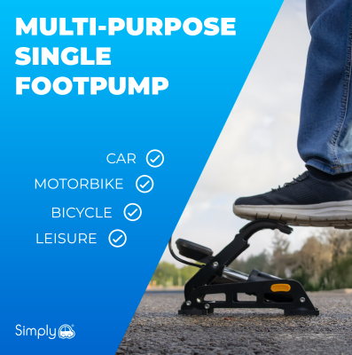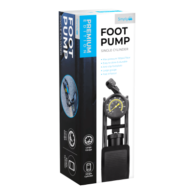 The Simply Premium Single Foot Pump is engineered with a powerful single-cylinder design that delivers smooth, consistent airflow for fast and reliable inflation. Built with a durable steel frame, wide base and rubberised feet, it offers excellent stability during use. The ergonomic non-slip foot pedal provides secure footing and comfortable operation every time you pump.