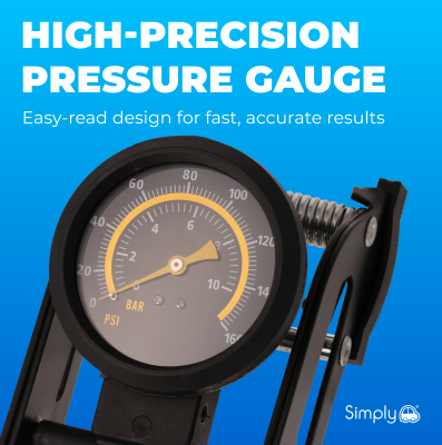 The large, easy-read analogue gauge provides clear and accurate pressure readings in both PSI and BAR, allowing you to monitor inflation levels precisely and achieve optimal pressure quickly.