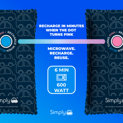 Our portable reusable dehumidifier is ideal to use all year round in cars, caravans or motorhomes, continuously absorbing excess moisture from the air. You can even use it indoors at home or at work close to a window you want to demist. It doesn’t take up much space as it only measures just H200 x W115 x D35mm.