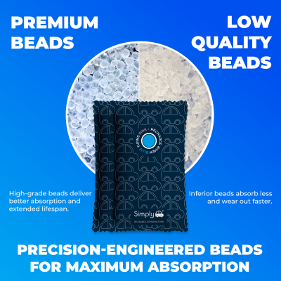 Filled with approximately 350g of activated environmentally friendly Silica Gel that can incredibly absorb up to 40% of its weight in moisture.